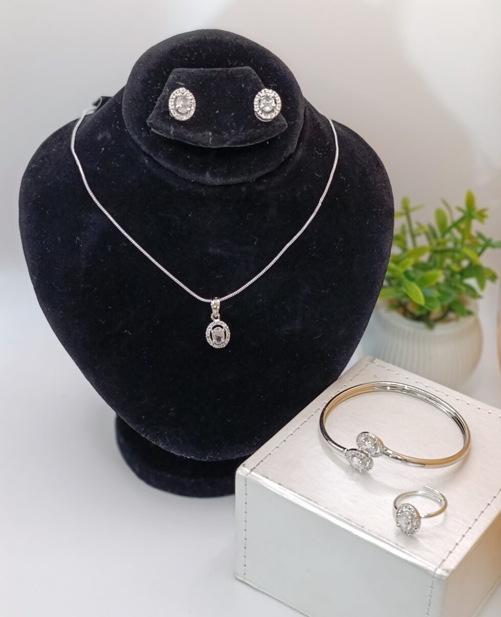 • Full 4-piece set: Pendant, Earrings, Bracelet & Ring