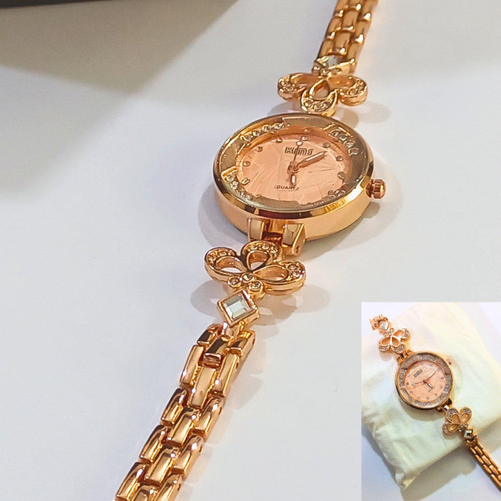 Add a touch of romance to your wrist with the Floral Charm Rose Gold Watch. Featuring a shimmering rose gold dial and floral crystal-studded motifs, this watch blends feminine elegance with contemporary style.