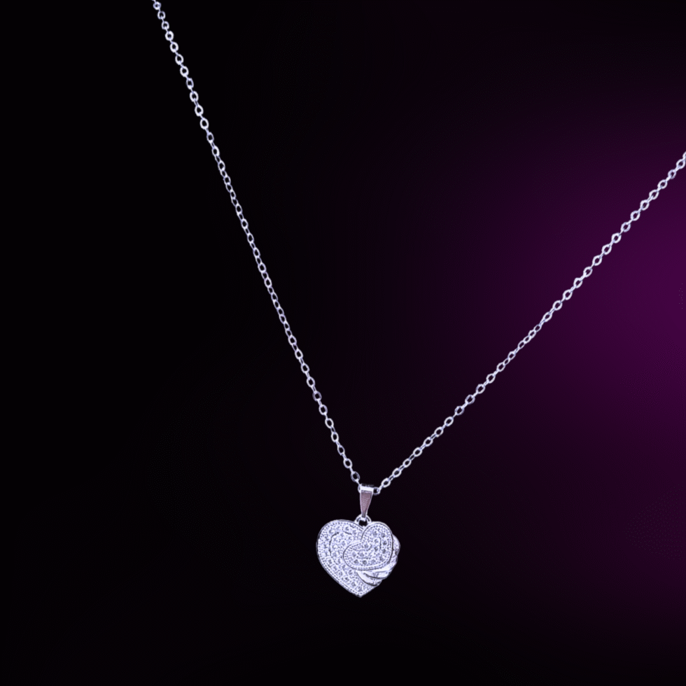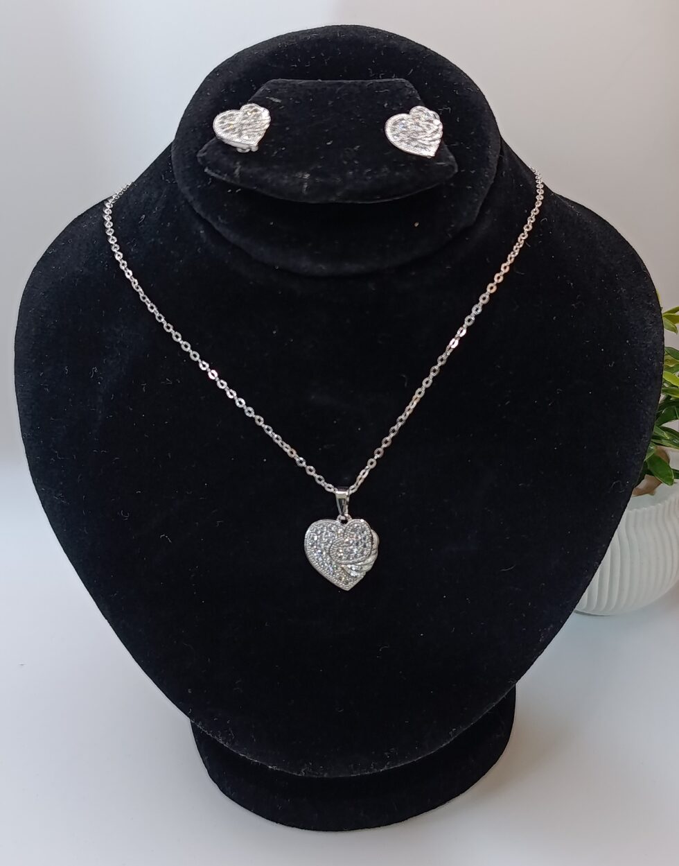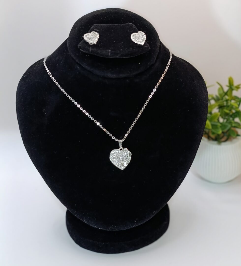 Delicate yet dazzling, this Silver Heart Pendant Set features a crystal-studded heart charm with matching stud earrings. Designed for daily elegance or soft romantic styling, it’s a charming choice for gifting or effortless wear.